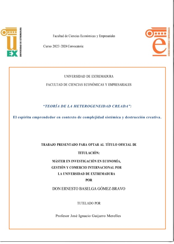 El objetivo general de este trabajo académico es analizar el espíritu emprendedor dentro del contexto de la destrucción creativa y la complejidad sistémica de nuestra economía actual para comprender la figura del empresario en este nuevo modelo de economía a través de la confirmación o refutación de las hipótesis formuladas buscando la correlación entre libertad económica y la demografía empresarial y otros aspectos subyacentes que la integran para buscar causalidad o factores de riesgo que expliquen la mortalidad empresarial del nuevo modelo de economía o estado emprendedor.